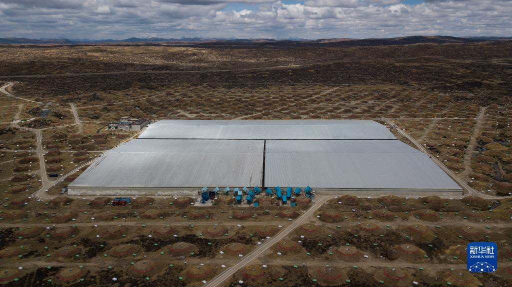 这是4月21日拍摄的高海拔宇宙线观测站“拉索”(LHAASO)(无人机照片)。