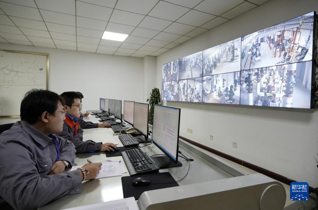 11月16日,唐山市丰润区国能热力供热运行调度中心的工作人员在监测供热系统运行情况。