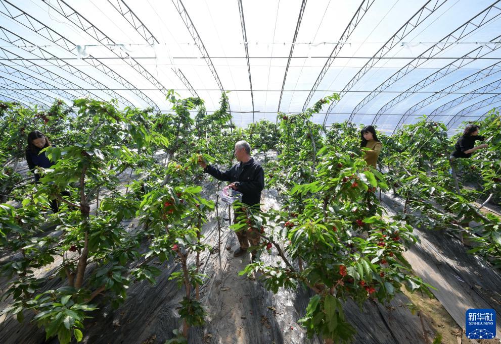 近日,河北省乐亭县丞起现代农业园区不同花期的樱桃树开花、结果,果农忙着管护、采摘,大棚内一派忙碌景象。近年来,乐亭县引导农民采取“合作社+农户”的模式种植大棚樱桃、桃、葡萄等果品,促进农民增收。