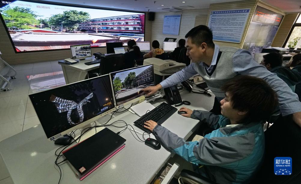 工作人员利用城市智慧大脑系统监控社区消防动态(11月16日摄)。