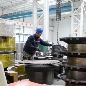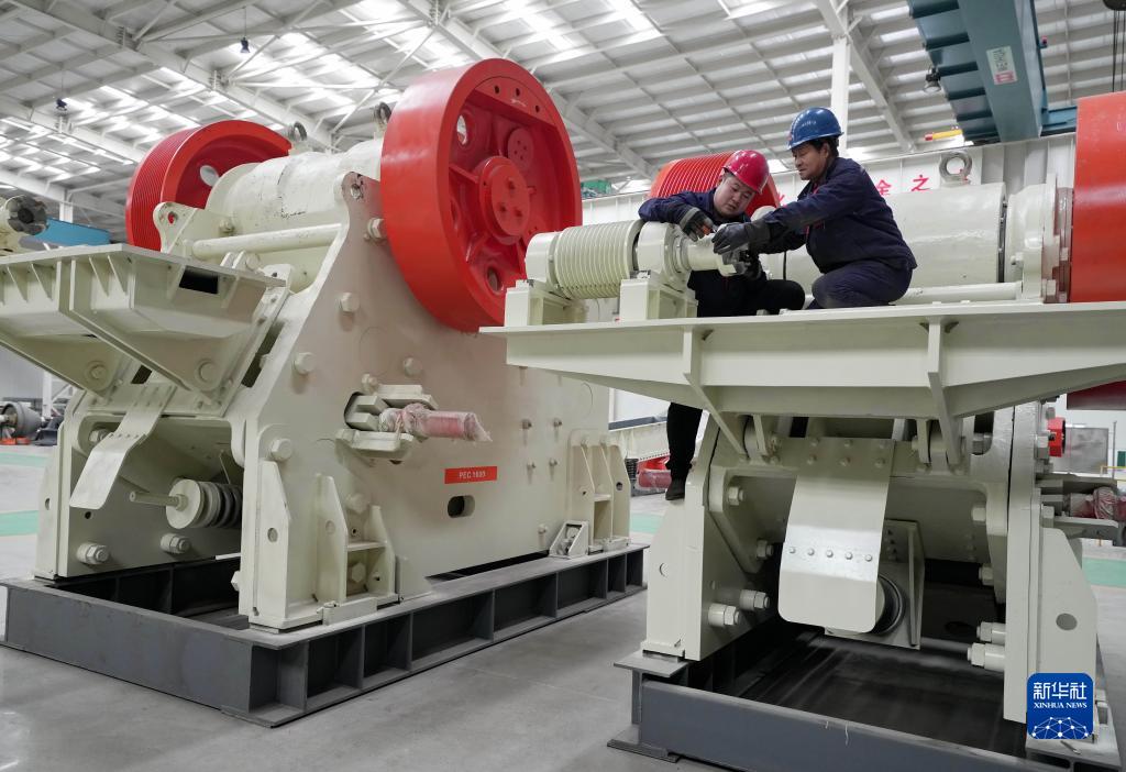 11月16日,工人在河北省遵化市一家矿山机械设备企业的生产车间工作。