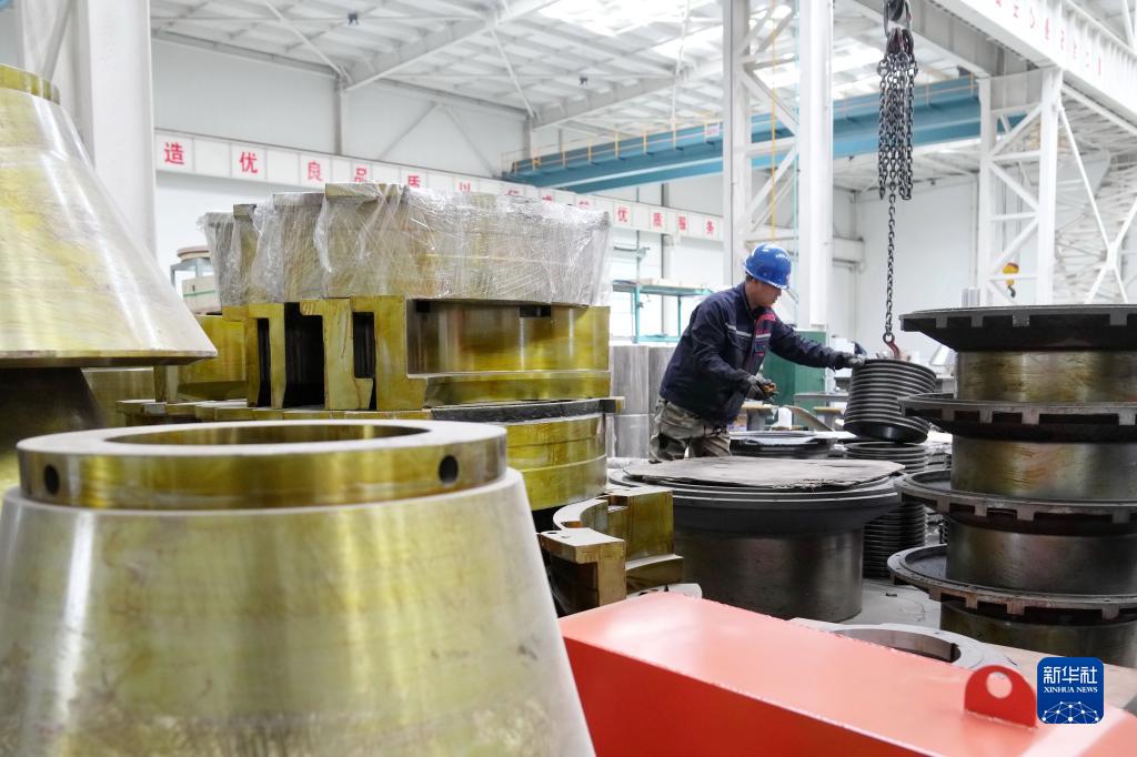 11月16日,工人在河北省遵化市一家矿山机械设备企业的生产车间工作。
