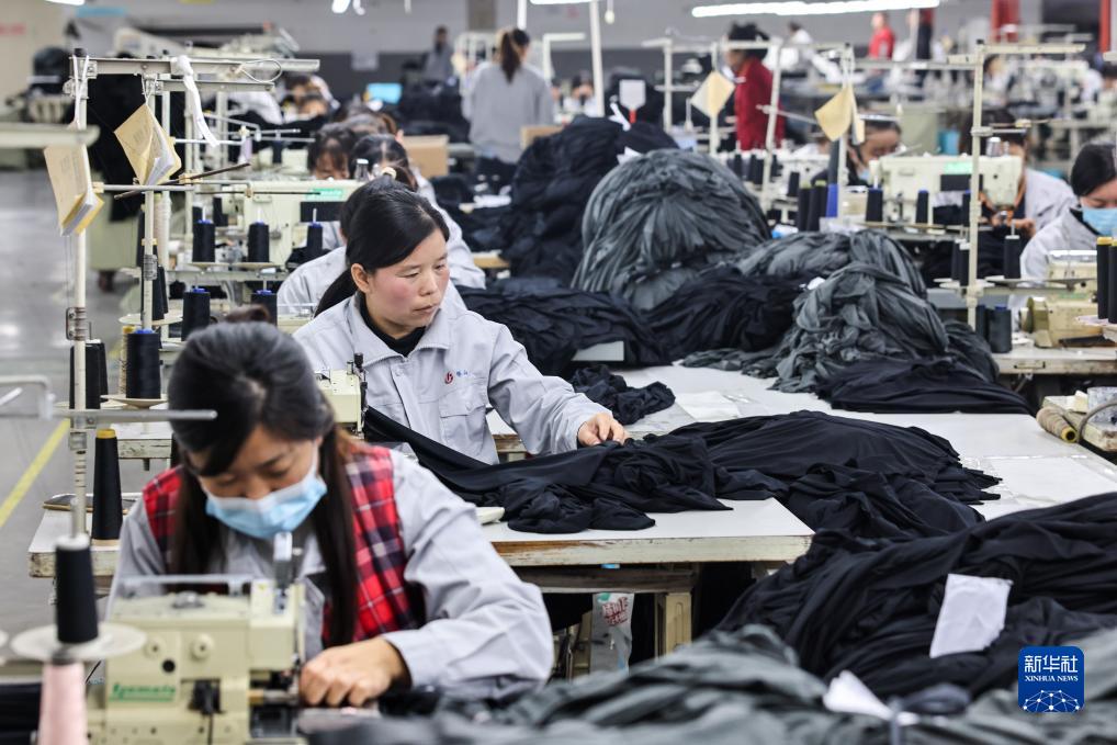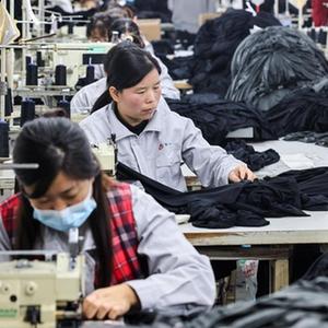 11月16日,东平县老湖镇居民在水利扶贫产业园内的纺织企业工作。