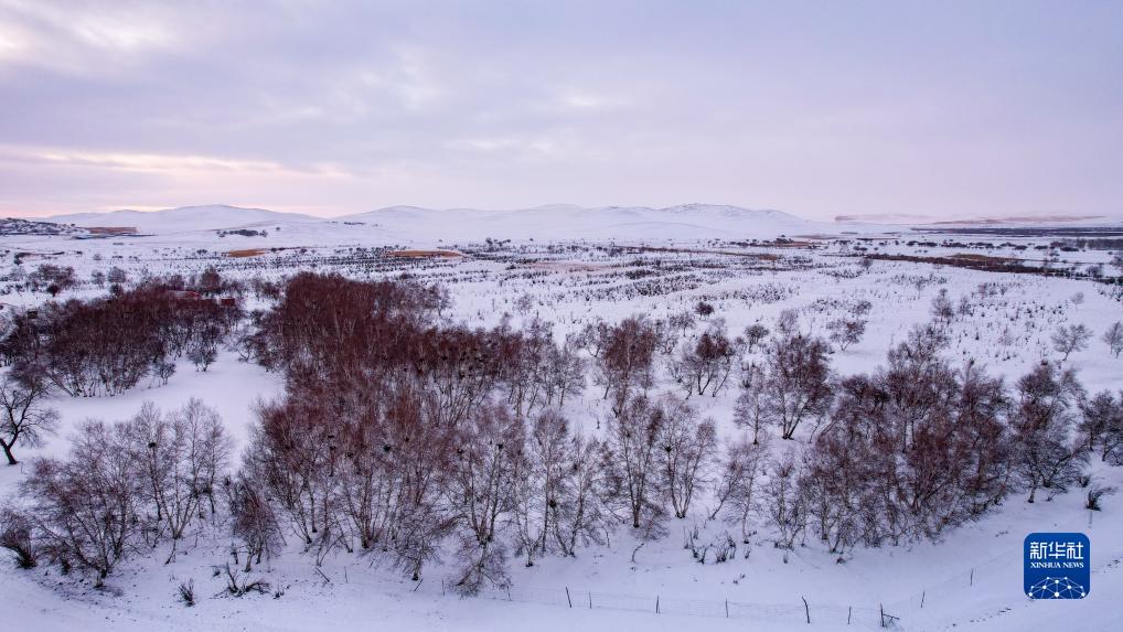 一场降雪过后,位于内蒙古锡林郭勒盟西乌珠穆沁旗的乌珠穆沁草原到处白雪皑皑、银装素裹,呈现出别样的动人景观。