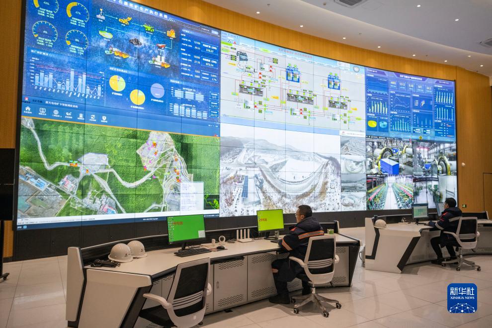 11月16日,在位于鹤岗市萝北县的中国五矿集团(黑龙江)石墨产业有限公司,工作人员在智慧管控中心内作业。