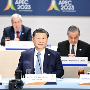 当地时间11月16日中午,国家主席习近平在旧金山出席亚太经合组织领导人同东道主嘉宾非正式对话会暨工作午宴。