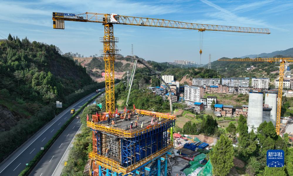 这是11月17日在四川省达州市境内拍摄的西渝高铁槟郎特大桥连续梁施工现场(无人机照片)。