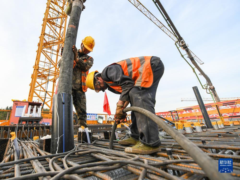 11月17日,工人在进行混凝土浇筑作业。