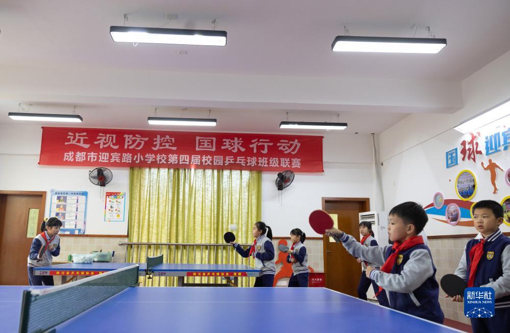 11月17日,在成都市迎宾路小学健康空间,学生利用课余时间打乒乓球。