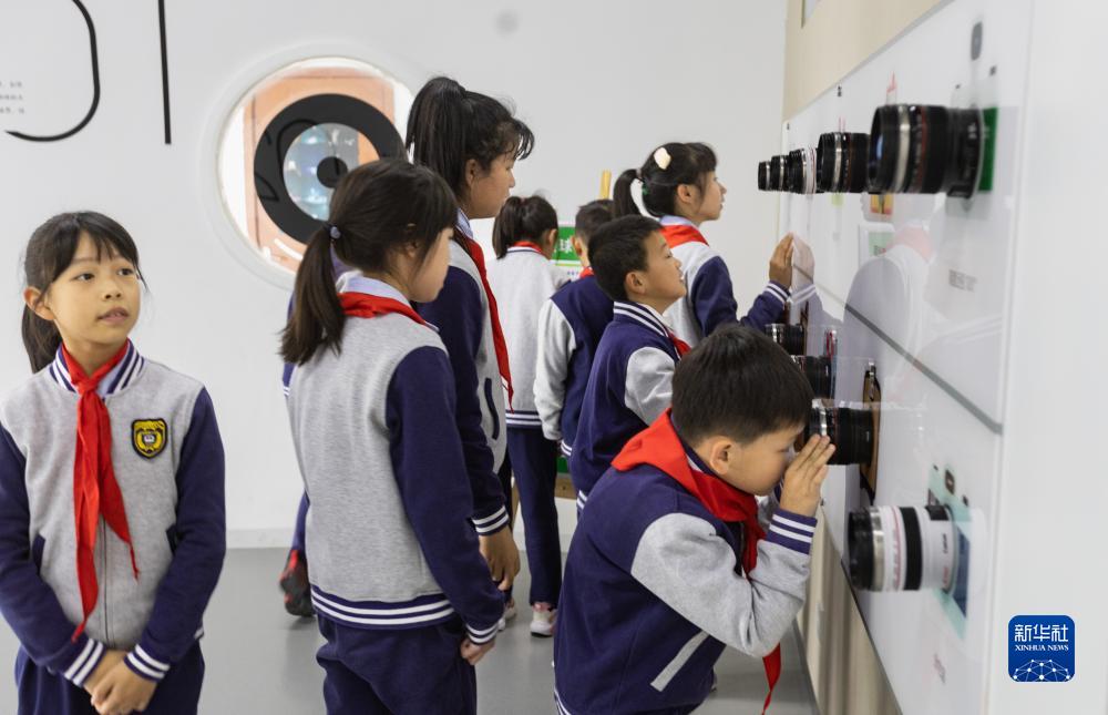 11月17日,在成都市迎宾路小学健康空间,学生感受视力疾病造成的视觉效果。