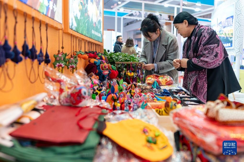 11月17日,观众在2023中国国际旅游交易会上选购小饰品。