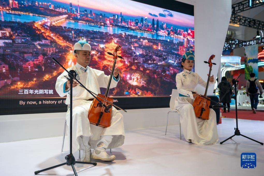 11月17日,演奏人员在2023中国国际旅游交易会内蒙古展区拉马头琴。
