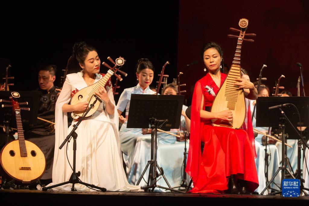 11月16日晚,在俄罗斯圣彼得堡,中国演奏家在“中国文化节”《江山如画》民族音乐会上表演。