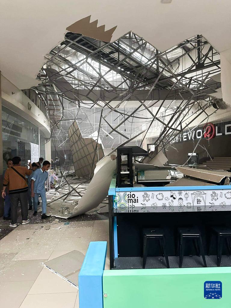 11月17日,在菲律宾桑托斯将军城,人们查看地震造成的房屋损毁情况。