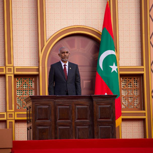 马尔代夫当选总统穆伊兹17日在该国首都马累共和国广场举行的议会特别会议上宣誓就职。