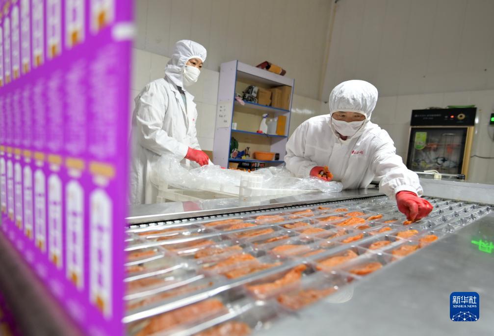 11月17日,河北省滦南县安各庄镇一家食品公司的工人在红薯条包装车间工作。