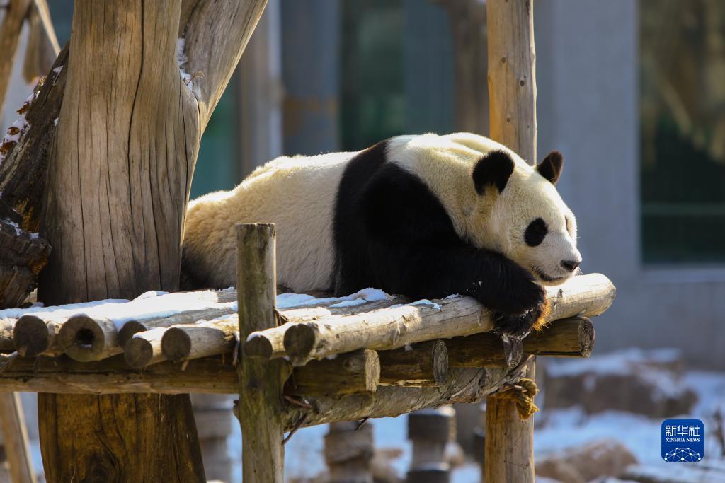 降雪天气过后,生活在沈阳森林动物园的大熊猫们在冬日暖阳中悠然自得。