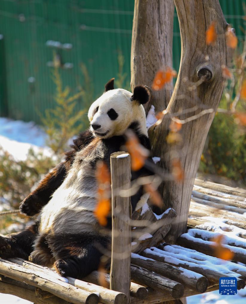 降雪天气过后,生活在沈阳森林动物园的大熊猫们在冬日暖阳中悠然自得。
