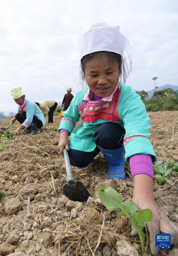 11月18日,村民在贵州省黔东南苗族侗族自治州榕江县车江万亩大坝移栽油菜苗。