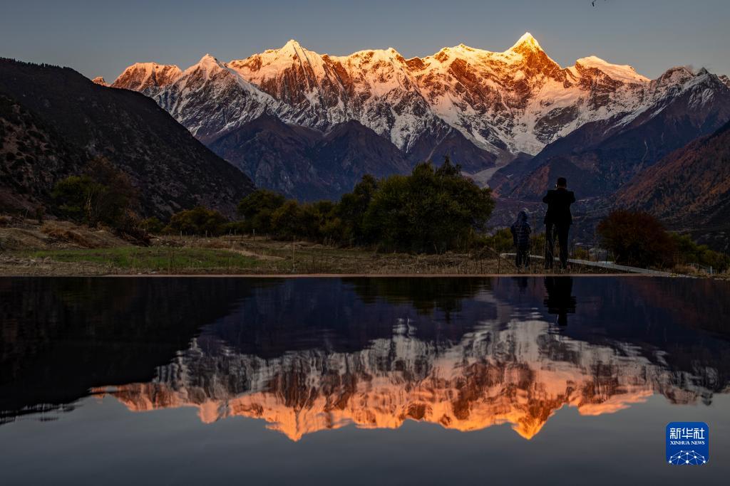 11月13日,游客在索松村拍摄日落时分的南迦巴瓦峰。