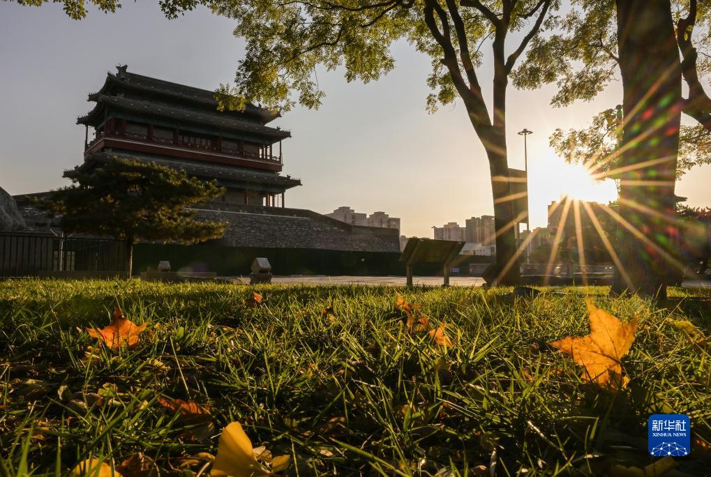 11月6日,秋日北京,天高云淡。北京中轴线最南端的永定门,文物建筑与色彩斑斓的秋叶相互映衬,美不胜收。