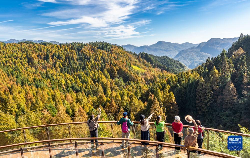 11月17日,游客在重庆市南川区山王坪喀斯特生态公园欣赏美景。