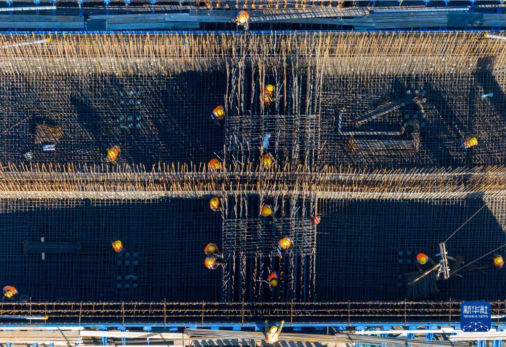 11月18日,工人在进行施工作业(无人机照片)。