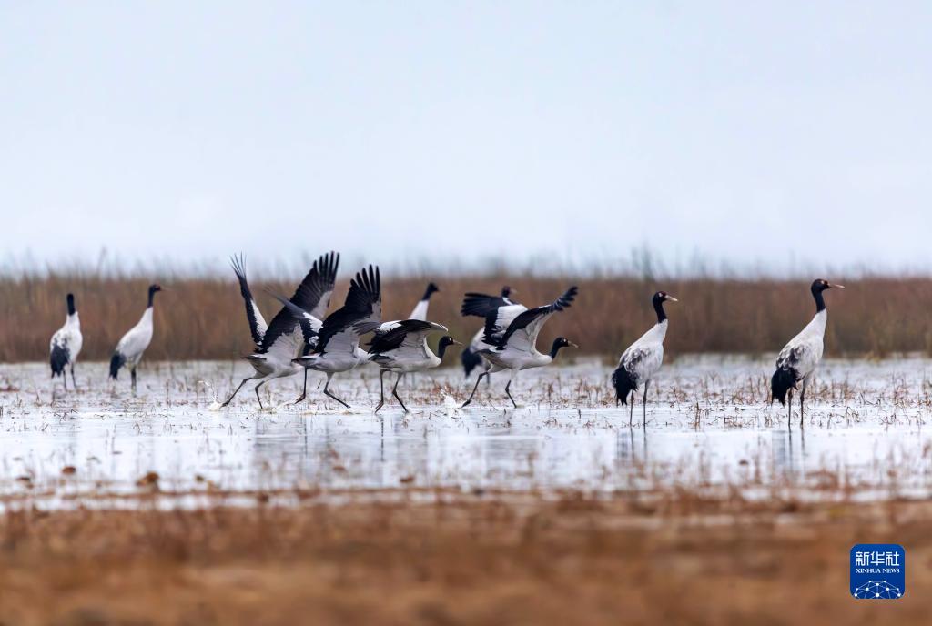 入冬以来,贵州省威宁彝族回族苗族自治县草海国家级自然保护区陆续迎来越冬黑颈鹤。据草海国家级自然保护区管理委员会最新监测数据显示,截至11月18日,越冬黑颈鹤数量已超1500只。