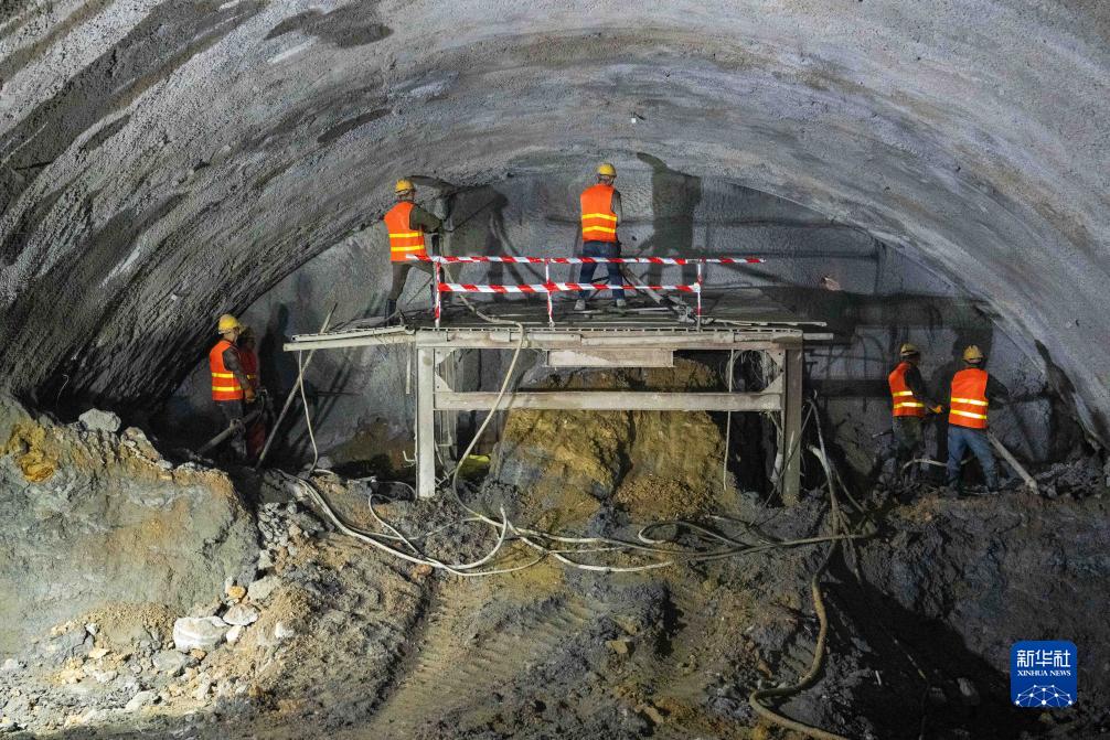 11月19日,中铁五局施工人员在桑龙高速金家坡二号隧道内施工。