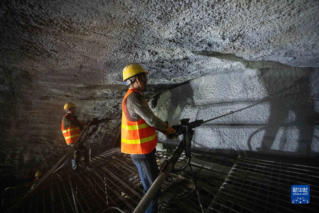 11月19日,中铁五局施工人员在桑龙高速金家坡二号隧道内施工。