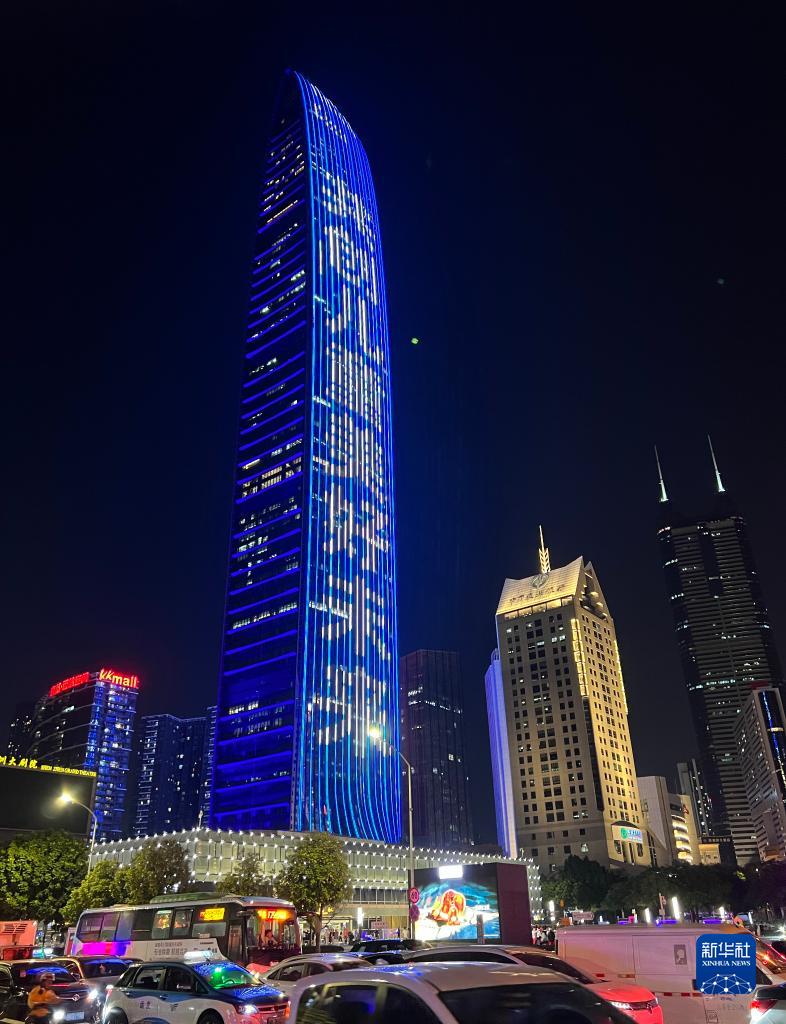 11月20日,广东深圳市区的楼宇为世界儿童日亮灯。