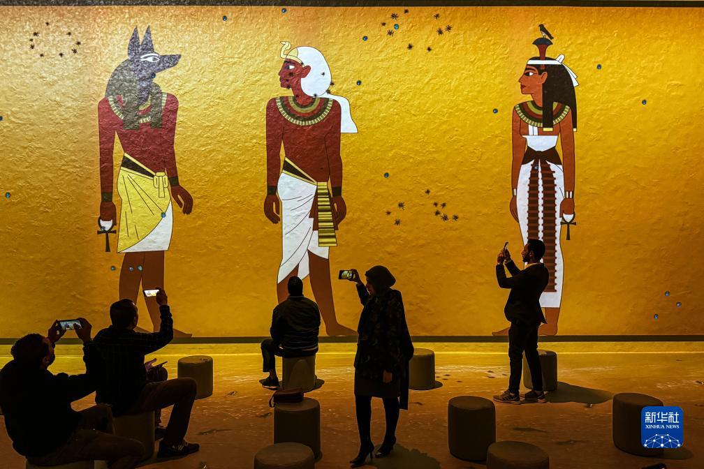 11月20日,人们在埃及吉萨的大埃及博物馆参观图坦卡蒙沉浸式展览。
