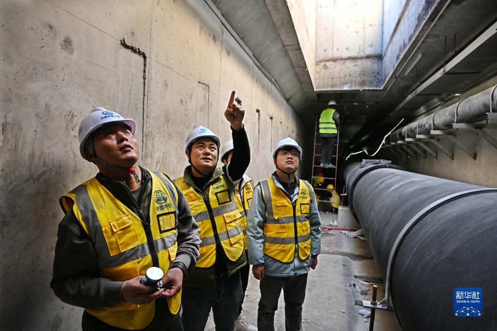 工作人员在青岛市李沧区一段地下综合管廊巡查(11月20日摄)。