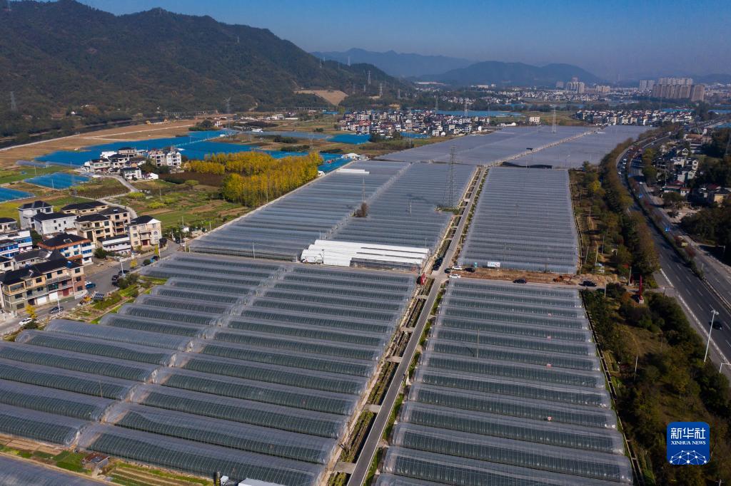 11月21日拍摄的草莓共富合作工坊连片大棚(无人机照片)。