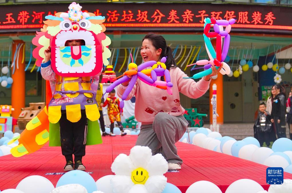 当日,四川省泸州市龙马潭区玉带河幼儿园举办了一场垃圾分类亲子时装秀,小朋友和家长身着用废纸壳、塑料袋、旧报纸等材料制作的各类创意服装走上舞台进行展示,让低碳生活、变废为宝的理念深入幼儿心灵。