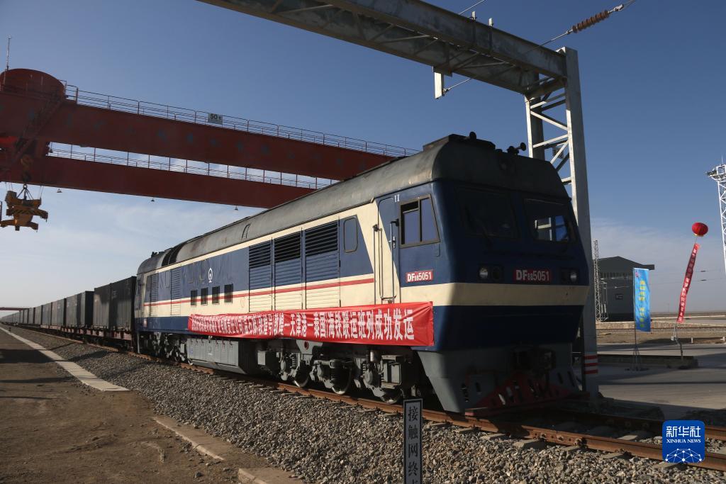 11月21日,首趟“敦煌号”(敦煌-天津港-泰国)铁海联运国际货运班列驶出敦煌铁路西货站综合货场。