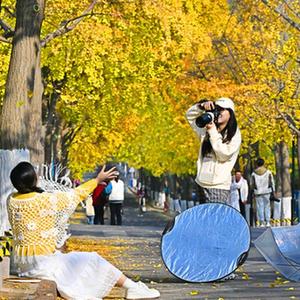 初冬时节,青岛八大关景区银杏大道染满金黄,不少市民和游客纷纷前来赏叶、观景,享受冬日暖阳带来的惬意与美好。