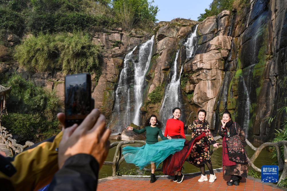 11月21日,游客在重庆市万盛经开区青山湖国家湿地公园游玩、拍照。
