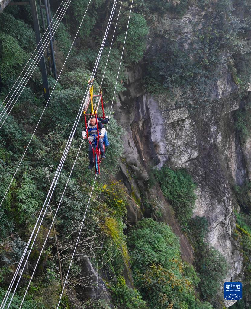 11月21日,游客在重庆市万盛经开区奥陶纪景区体验“悬崖自行车”游玩项目。