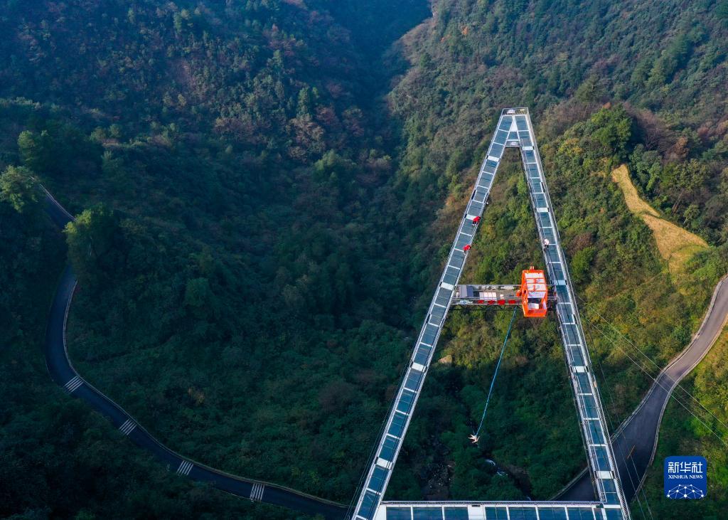 11月21日,游客在重庆市万盛经开区奥陶纪景区参观、体验(无人机照片)。