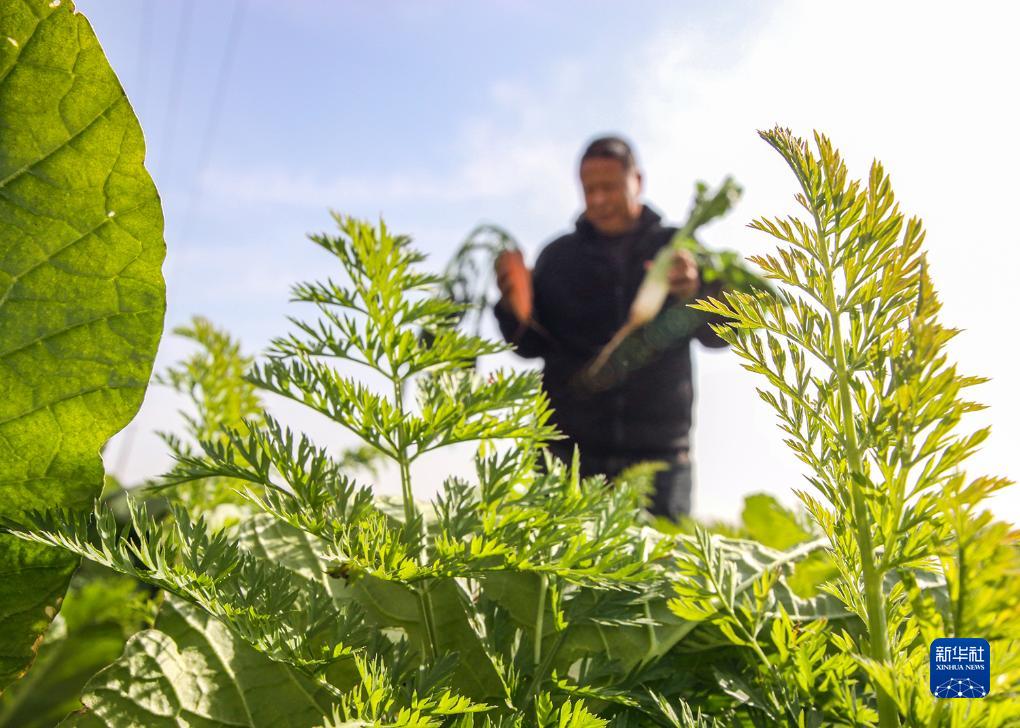 11月22日,在河南省焦作市博爱县金城乡西碑村,村民在查看萝卜长势。