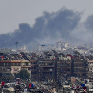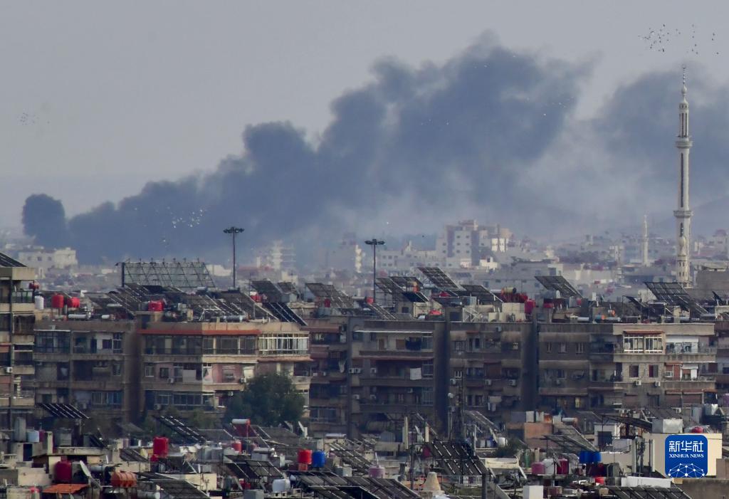 11月22日,叙利亚大马士革附近遭以军袭击后冒起浓烟。