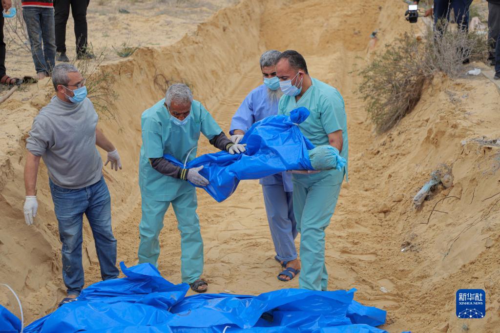 11月22日,人们在加沙地带南部城市汗尤尼斯埋葬巴以冲突遇难者。