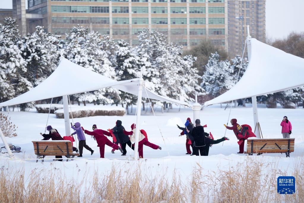 11月23日,在哈尔滨市湘江公园,市民在健身。