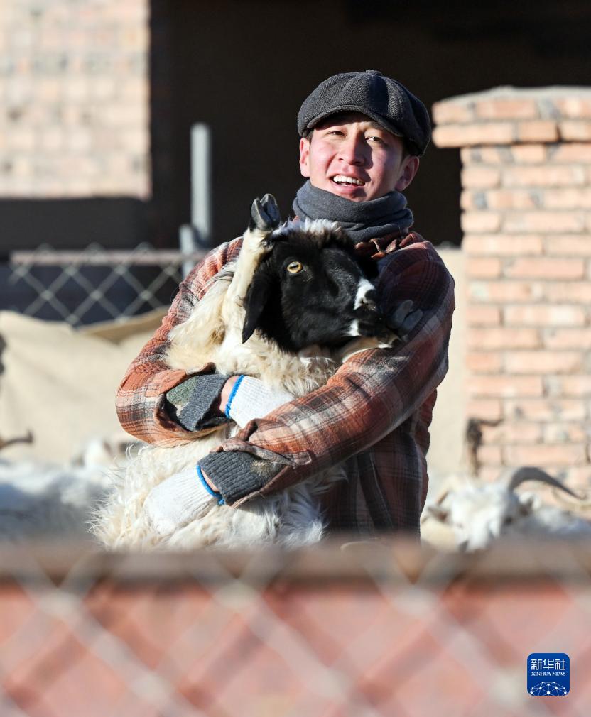 在内蒙古阿拉善左旗乌力吉苏木温都尔毛道嘎查,温都苏在羊圈里忙碌(11月17日摄)。