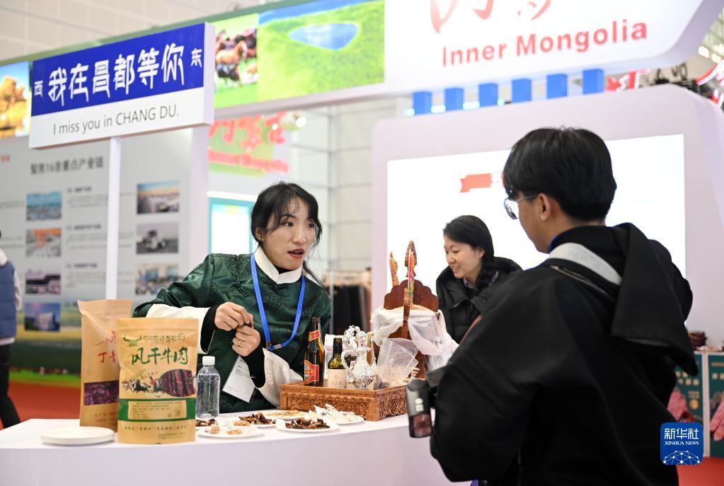 11月23日,参展商和参观者在国家会展中心(天津)国内省市合作交流展区交流。