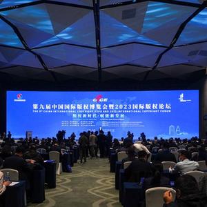 11月23日在成都天府国际会议中心拍摄的第九届中国国际版权博览会暨2023国际版权论坛现场。