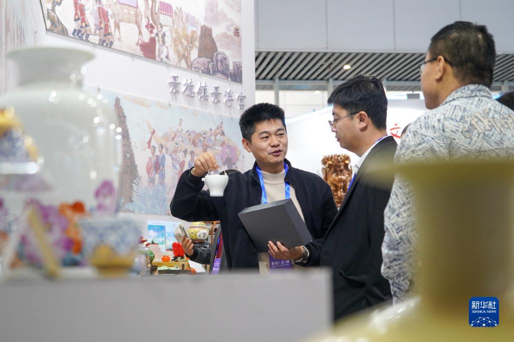 11月23日,在版博会展览现场,参展商在展示景德镇瓷器。