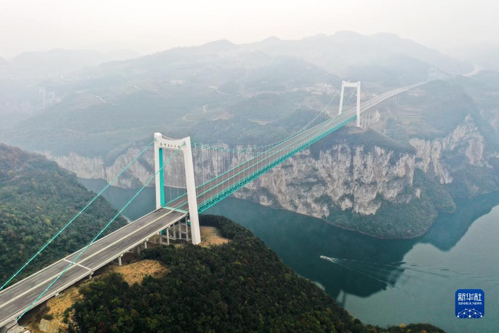 这是11月23日拍摄的贵金高速公路金烽乌江大桥(无人机照片)。