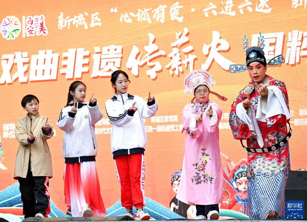 当日,西安市新城区“戏曲非遗传薪火 国粹文化立自信”新时代文明实践进校园活动在西安易俗社文化街区举行。西安市新城区西一路小学的百余位师生聆听秦腔经典曲目,感受传统戏曲文化魅力。